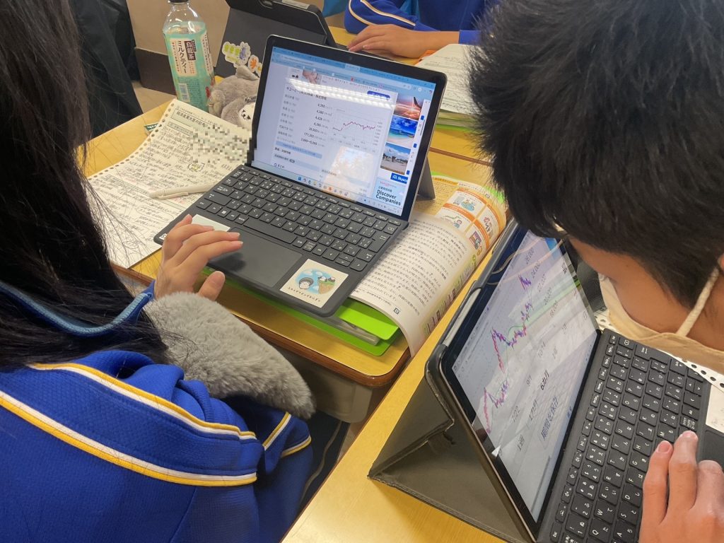 生徒一人ひとりにタブレットパソコンが貸与されており、情報を主体的に捉え、情報技術を活用して課題を解決できる力を育成しています。現在、生徒は学校でも自宅でも、学習の道具として常にタブレットパソコンをほ活用できる環境が整っています。