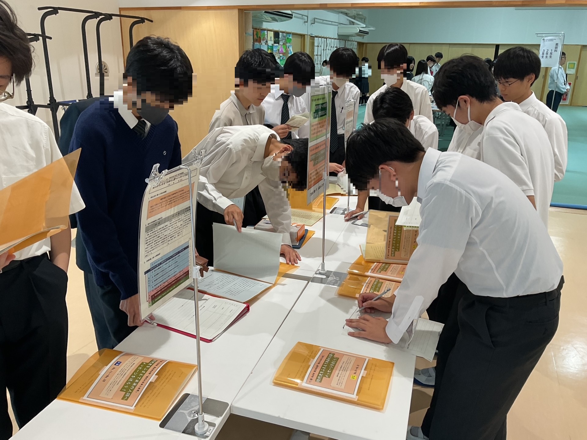10月 10/14 学習成果発表会 2025.10.14 一つひとつの成果物を丁寧に見学する姿や熱心にメモを取る姿が見られました。先輩や友人の学びから多くのことを感じ取り、自身の学びを発展させてください。それにしても見ごたえのある素晴らしい成果物でした。 10月 10/10 学習成果発表会・準備 10/15 後期初回の委員会活動
