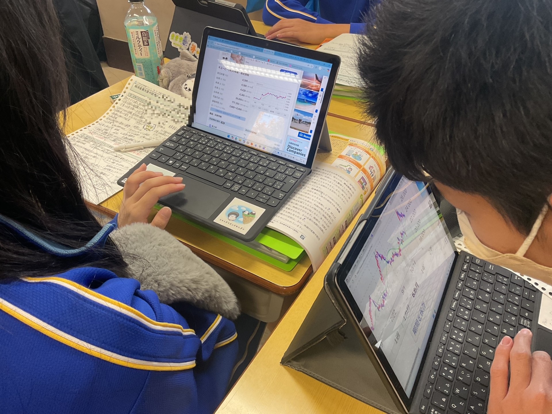 ❼11月 11/18 3年生・社会科 2025.11.18 株式会社のしくみを学ぶ授業の一環で、株価の変動を視点に企業の分析を行っていました。「株価が上がる企業(下がる企業)はどのような企業なのか」の問いに、様々な角度から自分なりの考えをまとめていました。 ❼11月 11/17 中庭の銀杏 11/19 合同避難訓練