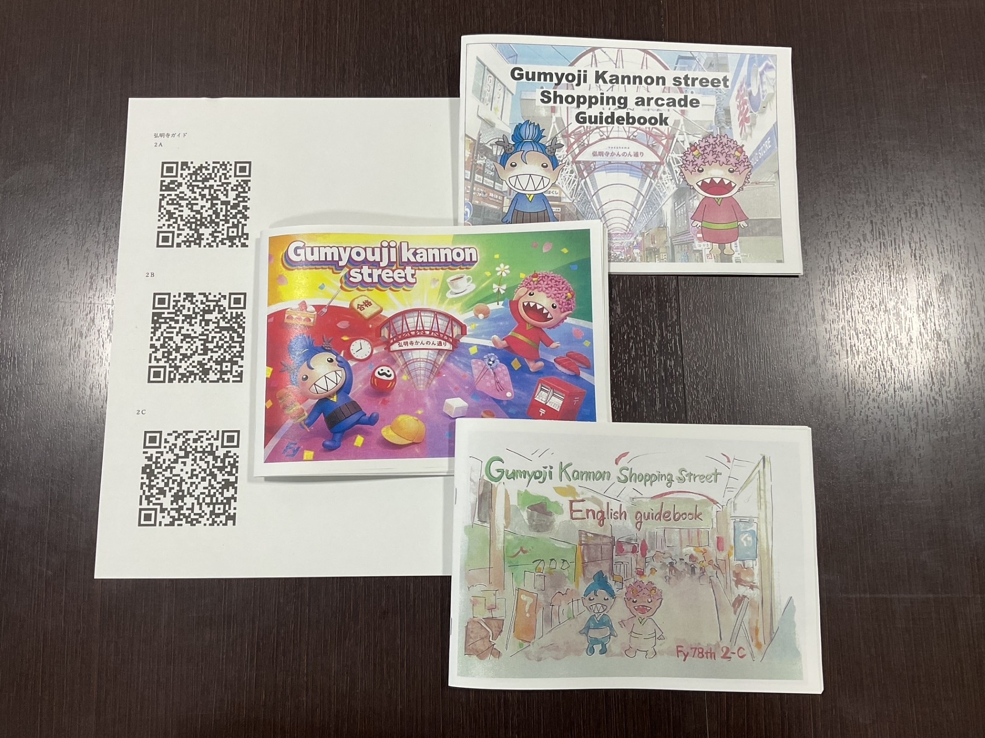 2年生・英語で取り組んできたガイドブックが完成しました。是非QRコードからご覧になってください。商店街の理事長さんからは「欲しかったものを作っていただいて大変ありがたい」とのお言葉をいただきました。