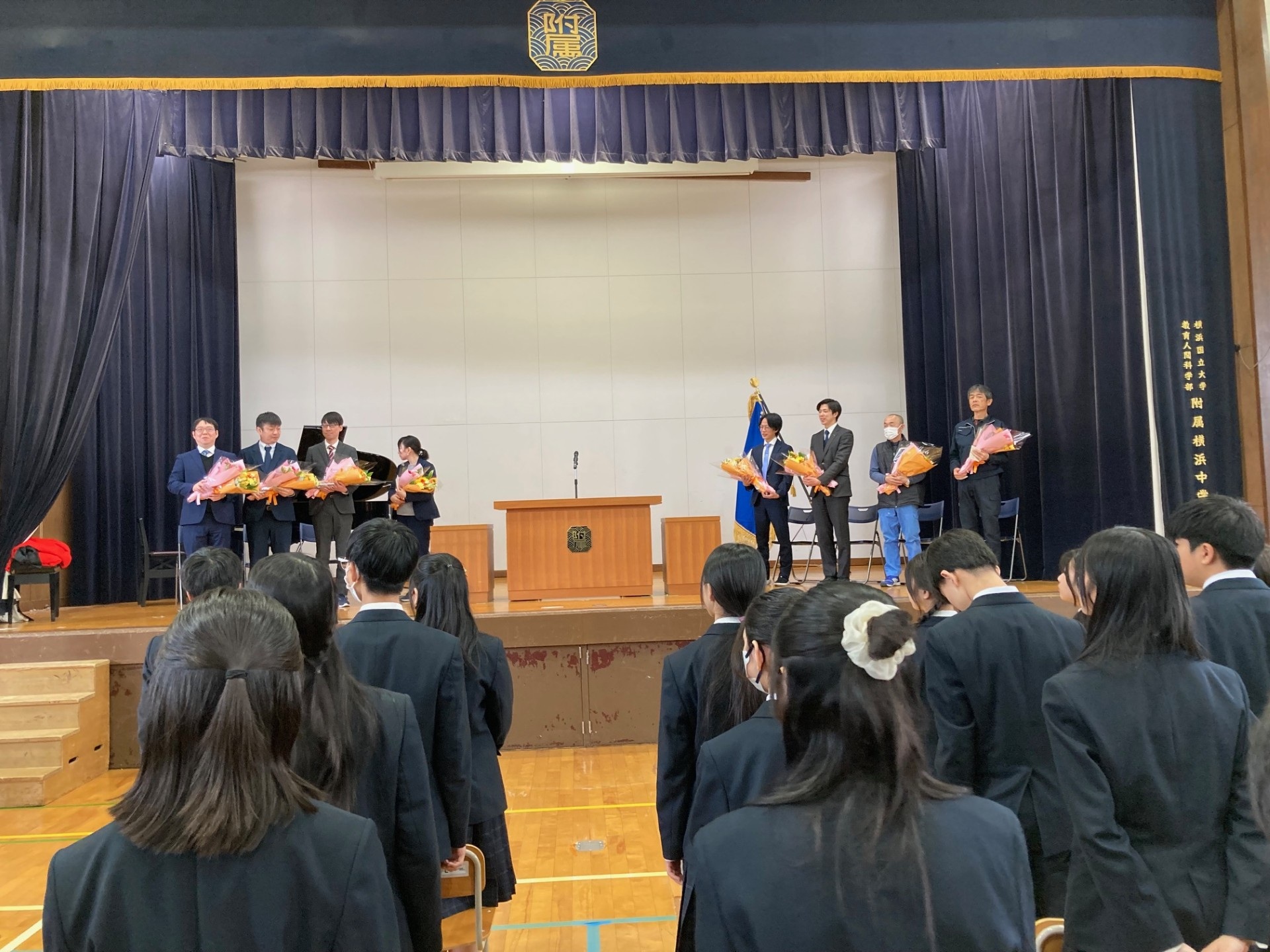 2026年03月 3/18 修了式・離任式 2026.03.18 78期は最上級生、79期は先輩となりますね。Fyをリードしてくれることを願っています。また、本校の教育活動を支えていただいた教職員12名が離任されます。これまでのご尽力に感謝し、今後の活躍を祈念します。 2026年03月 3/17 2年生・東京校外学習