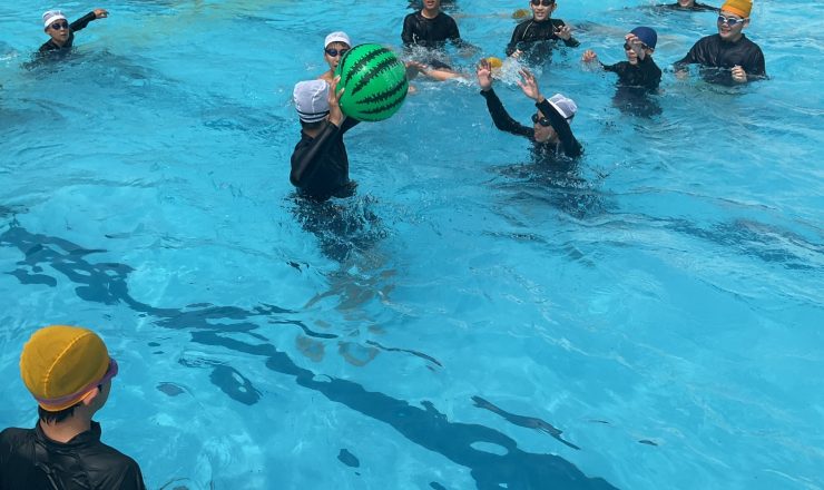 水泳学習の最終日です。今年も暑さへの注意を払いながら学習を進めてきました。今日は最初で最後の「水球」。いざゲームとなると必死にボールを追いかけていて...