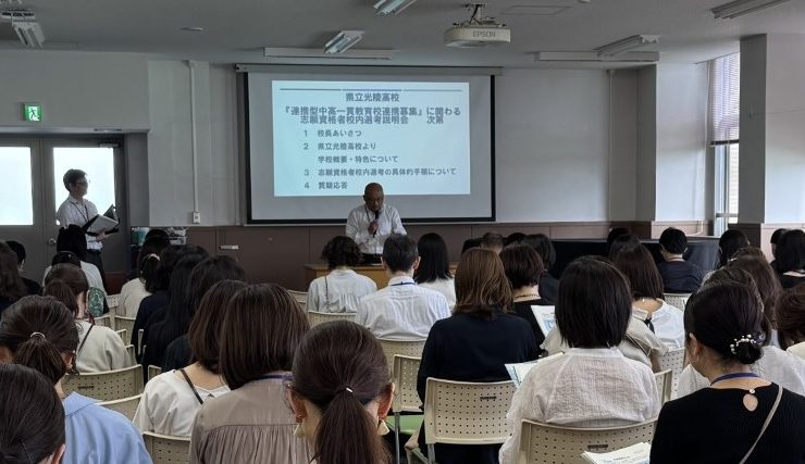県立光陵高校への「連携型中高一貫教育校連携募集」についての保護者説明会が開かれました。蘇武校長先生からは光陵への熱い思いやFy生への期待が語られまし...
