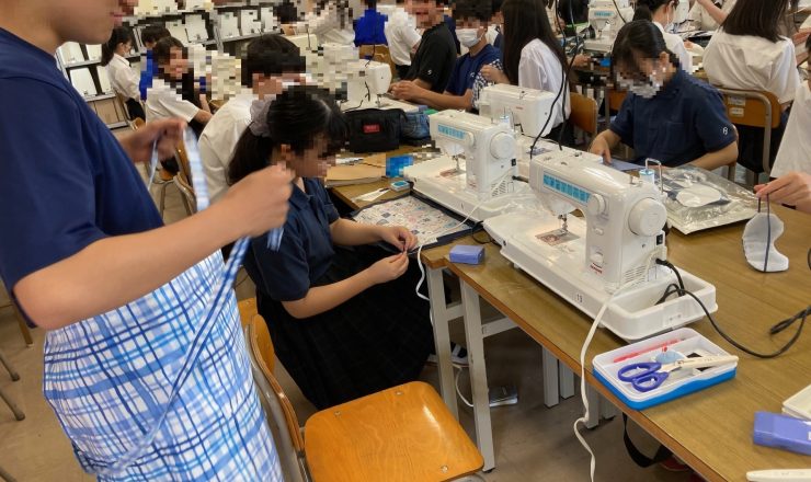 今は「衣生活」の学習です。自身や家族の生活を振り返り、布を使った作品製作を通して、生活の改善や豊かな生活の追究に取り組んでいます。この生徒は家事をし...
