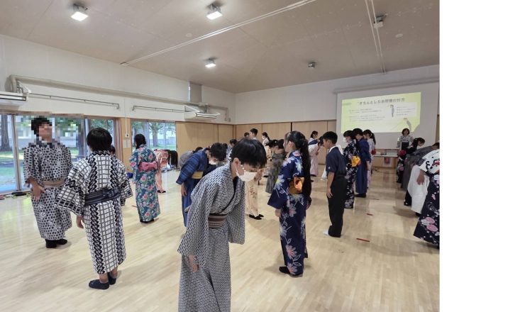 昨日1年生の家庭科の授業の一環で「浴衣の着装実習とお辞儀ワーク」が行われました。横浜国大の家政学講座の先生と学生合わせて17名にサポートしていただき...