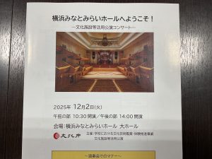 文化庁主催のコンサートがみなとみらいホールで開催され、招待された本校生徒が演奏会を鑑賞しました。「新日本フィルハーモニー交響楽団」の演奏を中心に雅楽やサックス四重奏も加わり、プロの技を堪能しました。