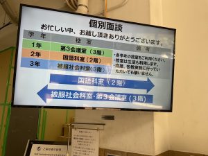 今週は三者面談週間です。保護者・本人・担任の三者が今学期の学びや学校生活を振り返り、3学期に一年間のまとめを行い、進級・進学につなげていきます。また3年生はこの面談で受験校を絞り込んでいきます。