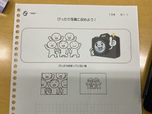 今日の課題は「人物がぴったりと収まる撮影ポイントの距離と角度について規則性を見つける」というものでした。タブレットを使い、ポイントを床のマス目から方眼紙にマークしていき規則性を探っていました。