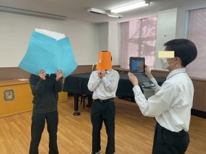 和歌の再現VTRを作成する課題に取り組んでいました。和歌を一つ選んで作者や歌の特徴を紹介しながら、詠まれた背景や心情を探り詠まれたシーンを再現します。このグループは山部赤人の和歌を選んだそうです。