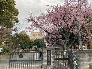 77期生の卒業を祝うかのように、正門の大寒桜が見ごろを迎えています。大寒桜は大島桜と寒緋桜の掛け合わせで、ソメイヨシノより早く開花するそうです。明日の卒業式の記念写真の背景にいかがでしょう。