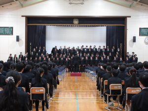生徒会主催の「3年生を送る会」が行われました。全校が一堂に会し、在校生からのムービーメッセージや3年生による合唱など、心温まる行事となりました。Fy のバトンが受け継がれ、新たな歴史が始まります。